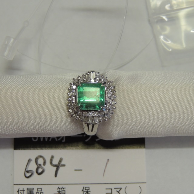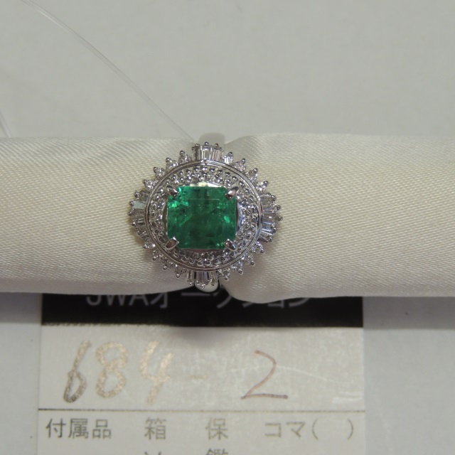 リング エメラルド ダイヤ Pt900 9.30g 石目:E1.91 D0.56
