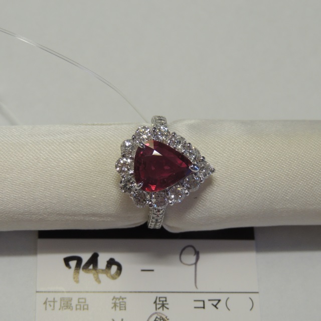リング ルビー 非加熱 ダイヤ Pt900 6.60g 鑑 石目:2.33 D1.60