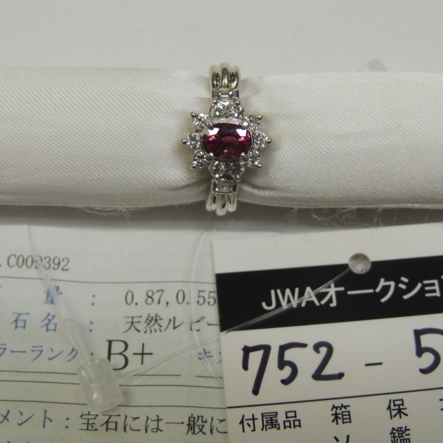 リング ルビー ダイヤ Pt900 7.40g ソ 石目:0.87 0.55