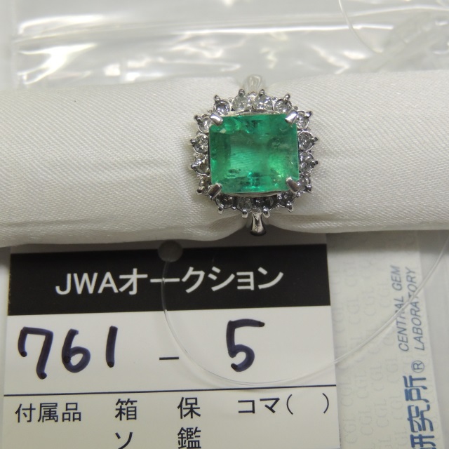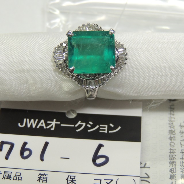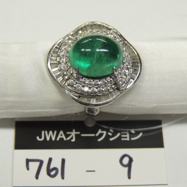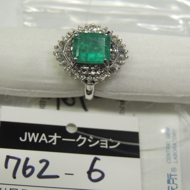 リング エメラルド ダイヤ Pt900 11.90g 中鑑 石目:7.483 D0.78