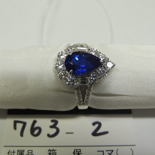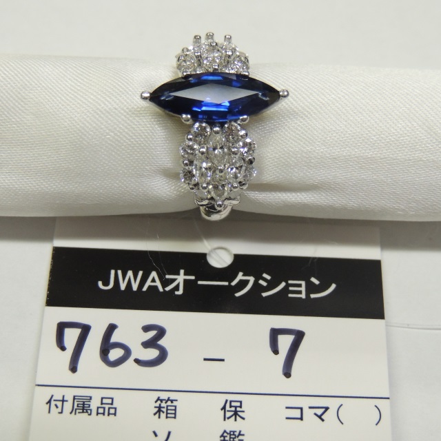 リング サファイア ダイヤ Pt900 7.40g 中鑑 石目:2.38 0.76