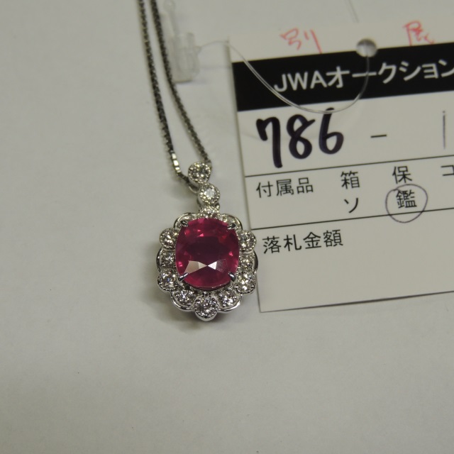 ペン・ネック ルビー 非加熱 ダイヤ Pt900/850 9.10g 鑑 石目:5.05 0.67
