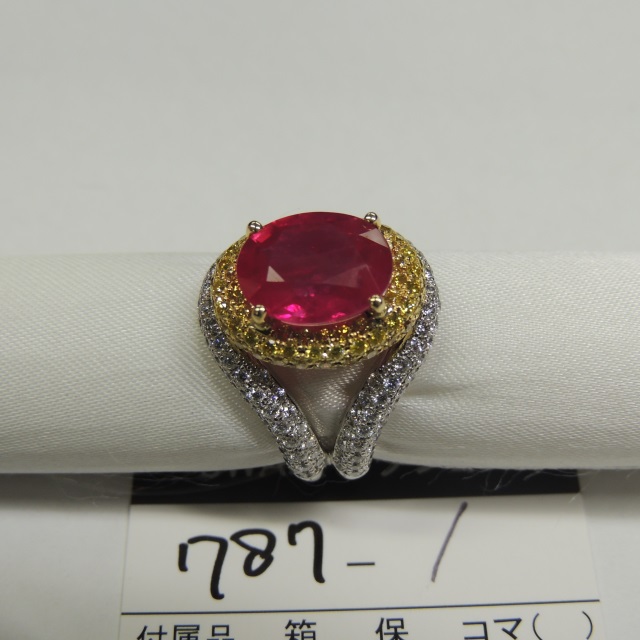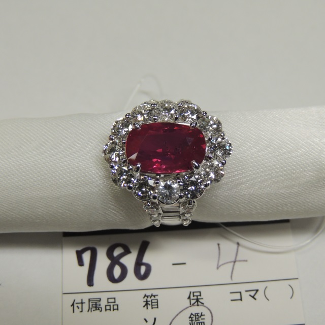 リング ルビー ダイヤ Pt900 11.50g 鑑 石目:4.01 2.82
