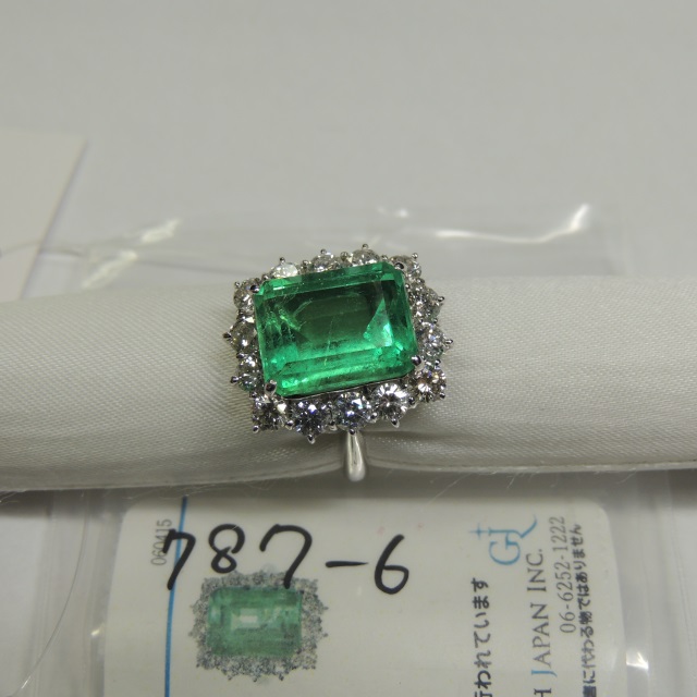 リング エメラルド ダイヤ Pt900 11.00g GRJソ 石目:6.76 1.83