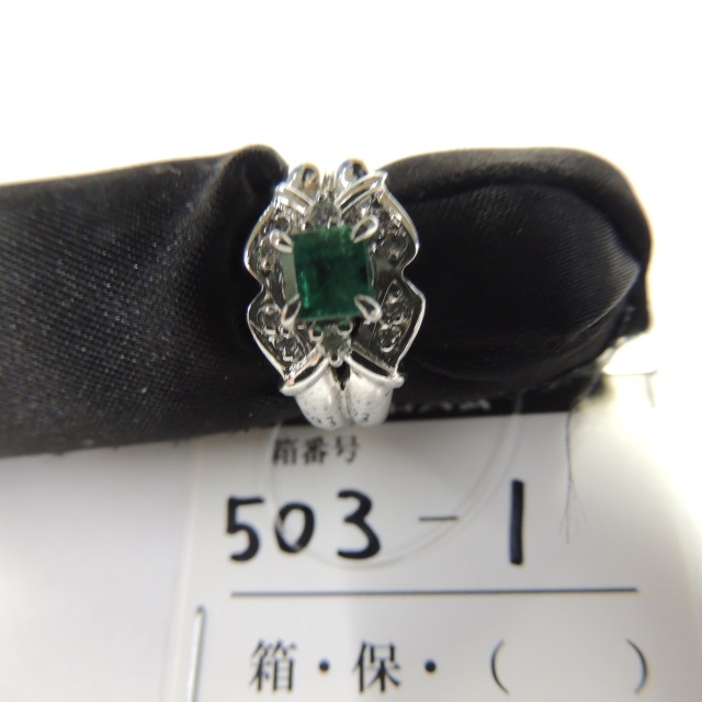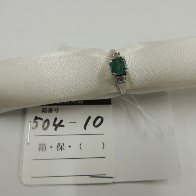 リング エメラルド ダイヤ Pt900 9.30g 鑑 石目:0.97 D0.97