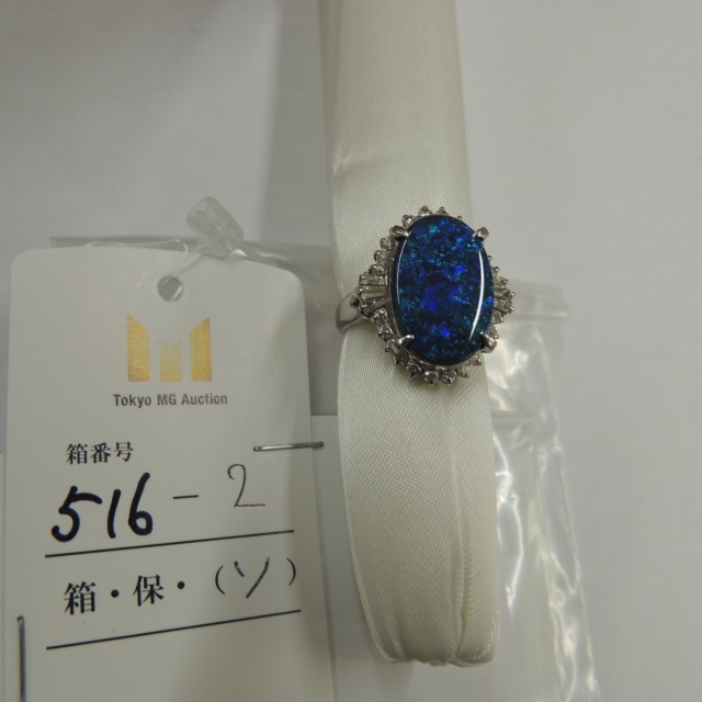 リング ブラックオパール ダイヤ Pt900 9.50g 中ソ 石目:BOP2.37 D1.20