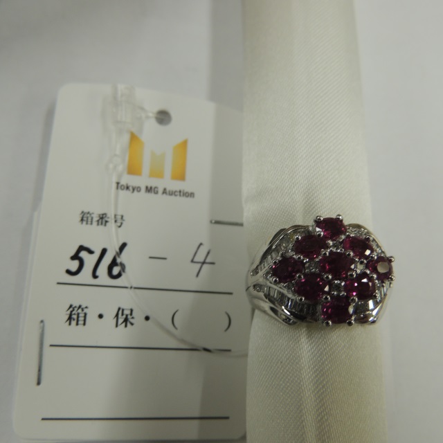 リング 非加熱ルビー Pt900 5.20g GRJ鑑 石目:1.569 D0.13