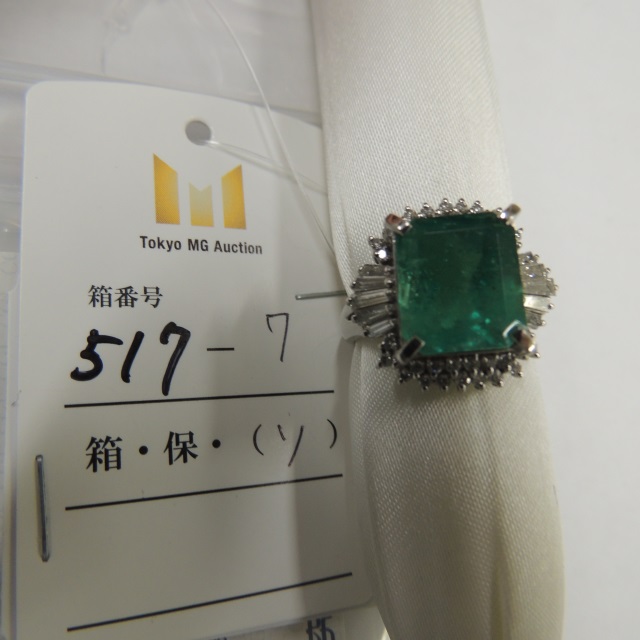 リング エメラルド Pt900 13.70g 鑑 石目:5.40 D0.52