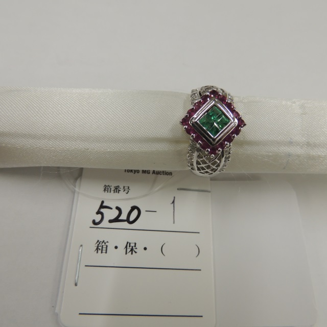 リング エメラルド ダイヤ Pt900 6.40g 石目:E0.62 D0.18