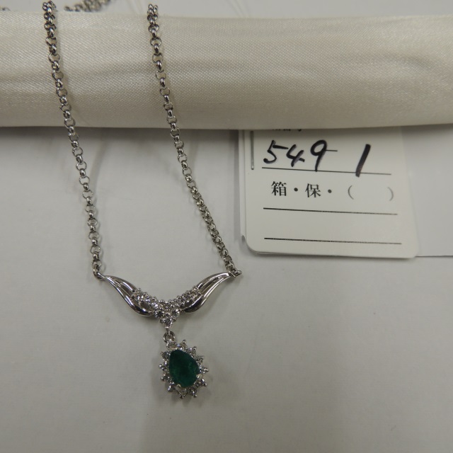 ペン・ネック エメラルド ダイヤ Pt900/850 15.30g GRJソ 石目:E12.34 FD0.40