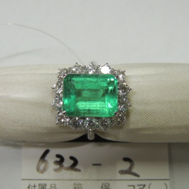 リング エメラルド ダイヤ Pt900 11.10g 石目:E6.76 D1.83