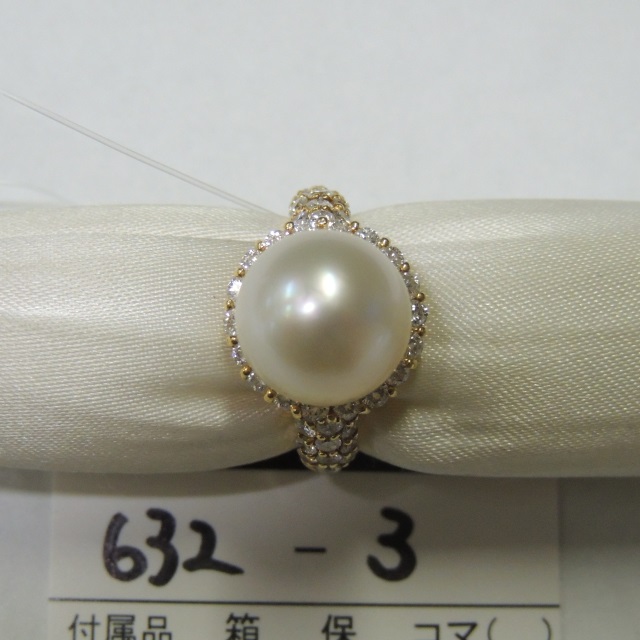 リング パール P11.7mm ダイヤ K18YG 7.90g 石目:D1.20