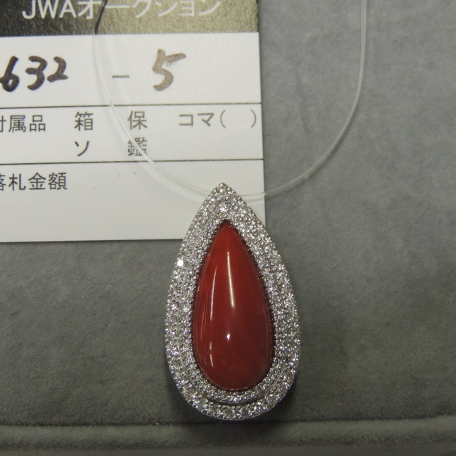 ペントップ サンゴ ダイヤ Pt900 11.40g 鑑 石目:S9.18 D0.82