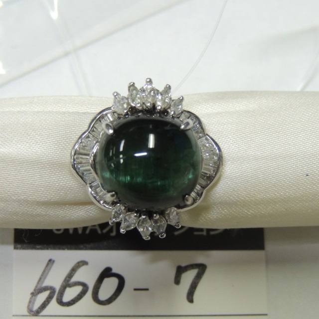 リング トルマリンキャッツアイ ダイヤ Pt900 13.20g GRJソ 石目:13.572 FD1.2