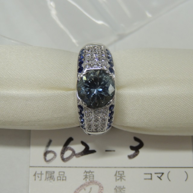 リング アクアマリン サファイア ダイヤ K18WG 11.10g 中ソ 石目:AQ2.00 S0.45 D0.35