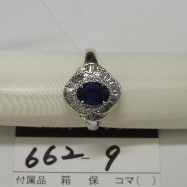 リング サファイア ダイヤ Pt900 7.80g 鑑 石目:1.29 0.68