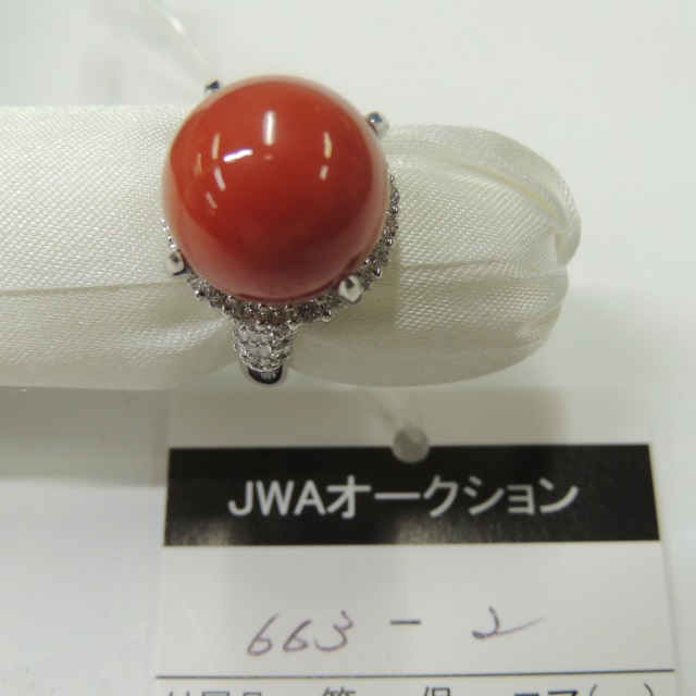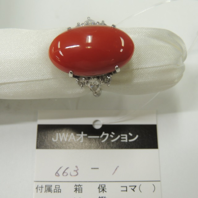 リング サンゴ ダイヤ Pt900 12.50g 石目:11.58 D0.97