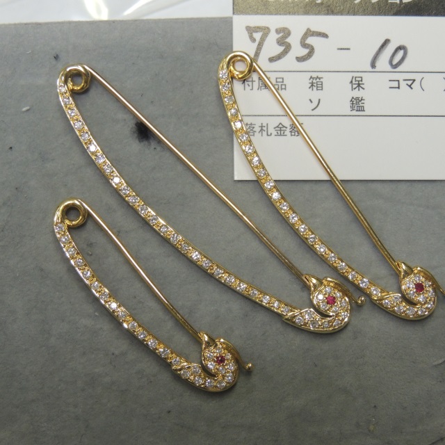 ブローチ ルビー ダイヤ スワンモチーフ 3本組 K18 14.00g