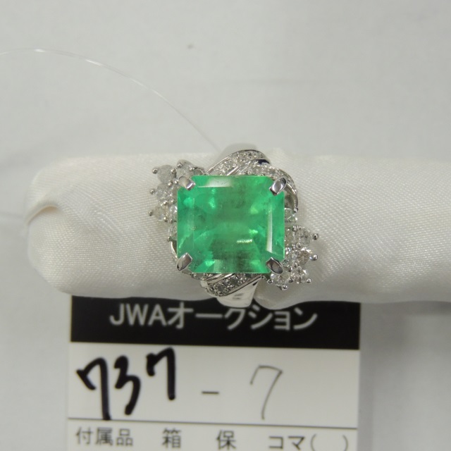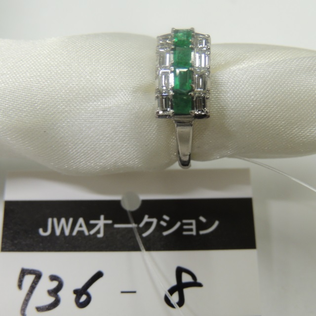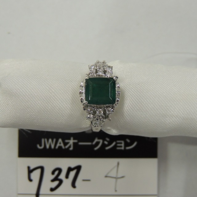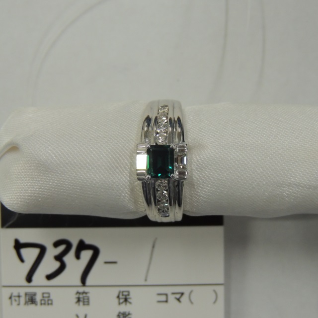 リング エメラルド ダイヤ Pt900 12.80g 石目:7.35 0.80