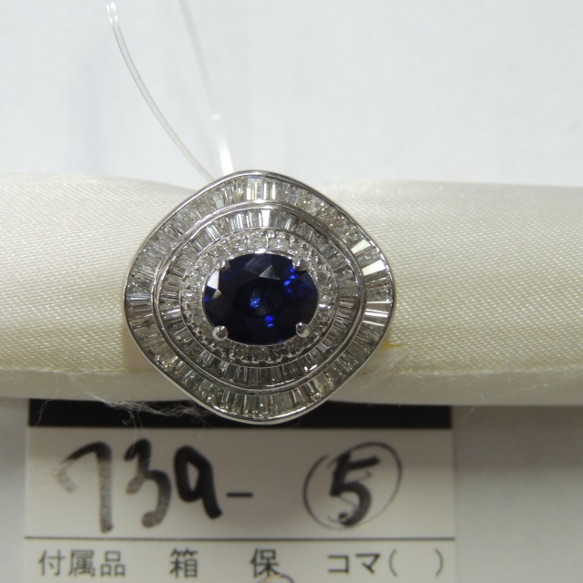 リング サファイア ダイヤ ロイヤルブルー Pt900 13.77g 鑑 石目:S2.98 D1.94