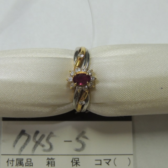 リング ルビー ダイヤ Pt900/K18 3.10g 石目:R0.21 FD0.19
