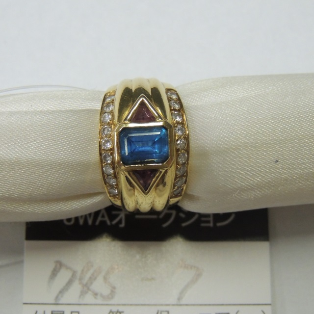 リング ブルートパーズ ダイヤ K18 8.80g 石目:BT1.41 FD0.36 色石0.28
