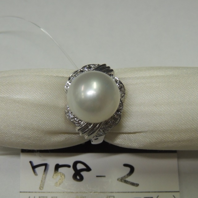 リング パール 11.5mm ダイヤ K18WG 6.30g 石目:FD0.03