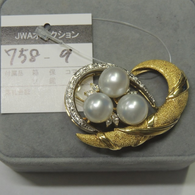 ブローチ パール 12-13mm ダイヤ K18/Pt900 39.30g 石目:FD1.04