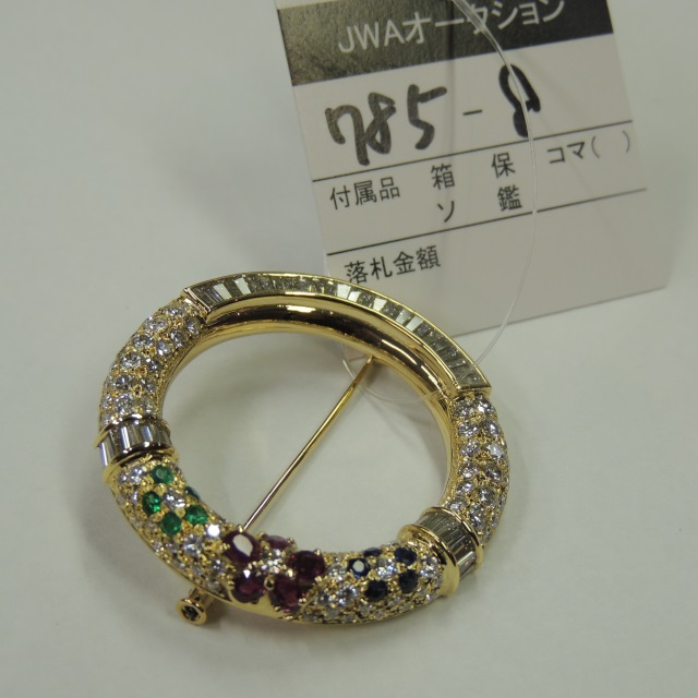 ブローチ 色石 ダイヤ K18 19.40g 石目:E0.24 R1.05 S0.27 D4.96