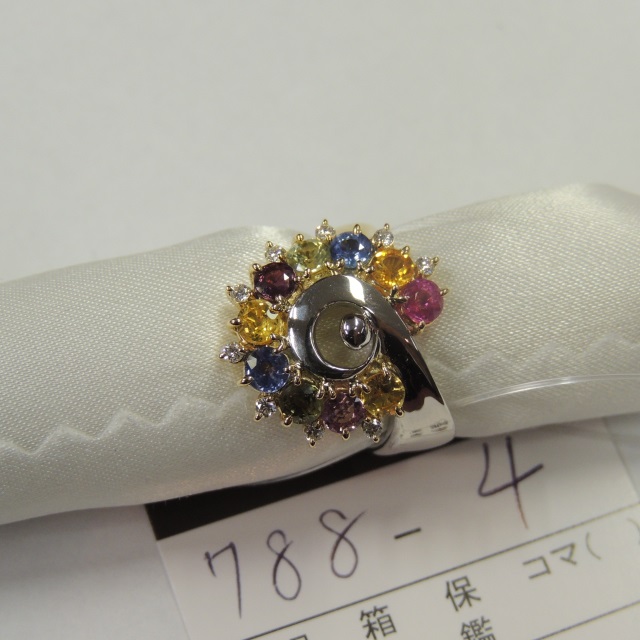 リング 色石 ダイヤ Pt/K18 6.90g 石目:2.09 0.13