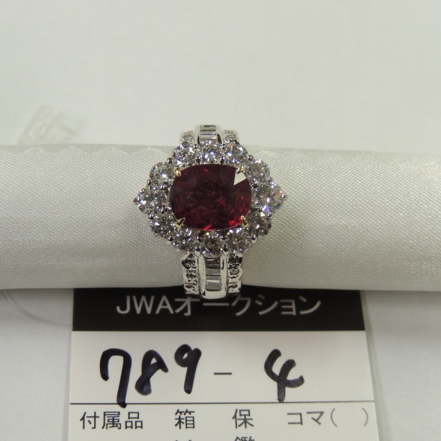 リング ルビー 非加熱 Pt900/K18 14.50g GRJ鑑 石目:2.465 D2.00