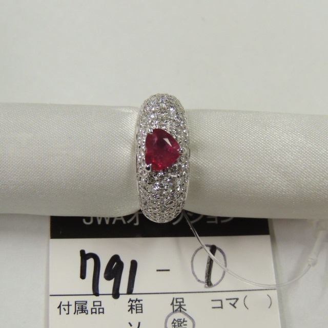リング ルビー 非加熱 ダイヤ K18WG 6.90g 鑑 石目:R1.17 D1.59