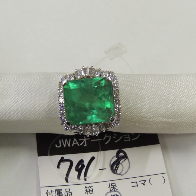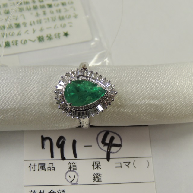 リング エメラルド ダイヤ Pt900 12.30g 中宝鑑 石目:E1.96 D.55 中石