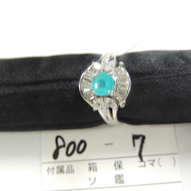 リング パライバトルマリン Pt900 6.30g 鑑 石目:TO7.49 D0.75