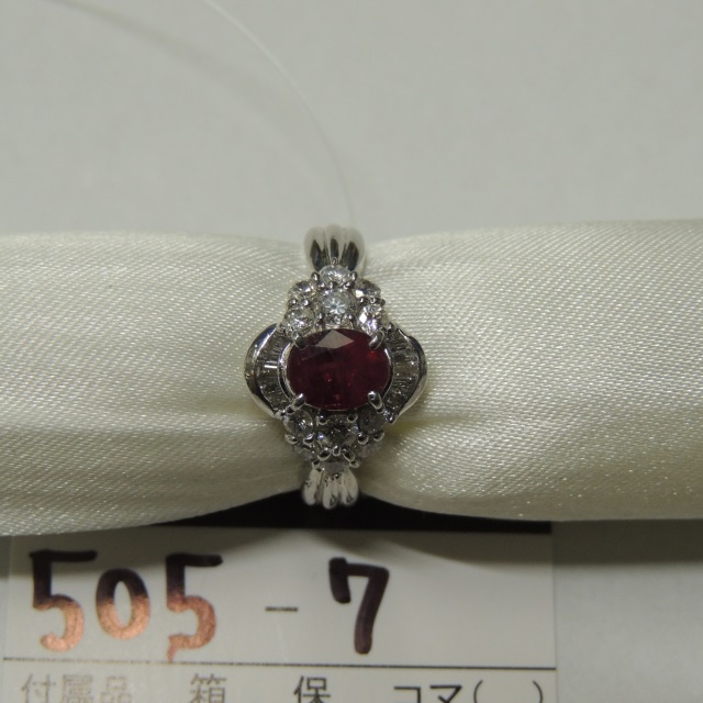 リング ルビー ダイヤ Pt900 7.60g 石目:R1.08 D0.40