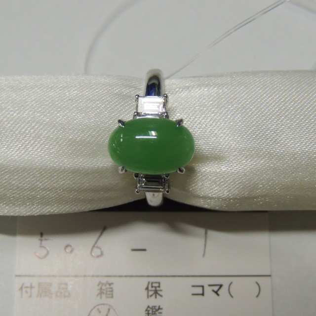 リング ヒスイ ダイヤ Pt900 6.50g 中ソ 石目:J3.23 D0.39