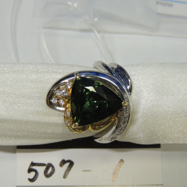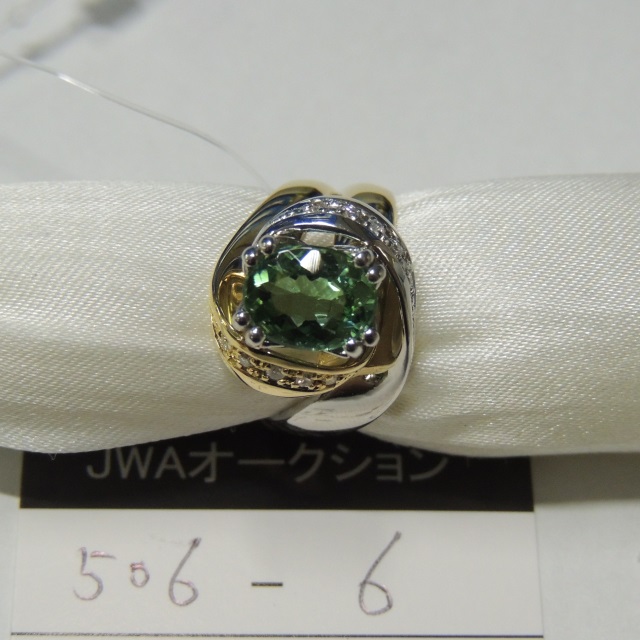 リング グリーントルマリン ダイヤ K18/Pt900 15.60g GRJソ 石目:GT7.096 D0.20