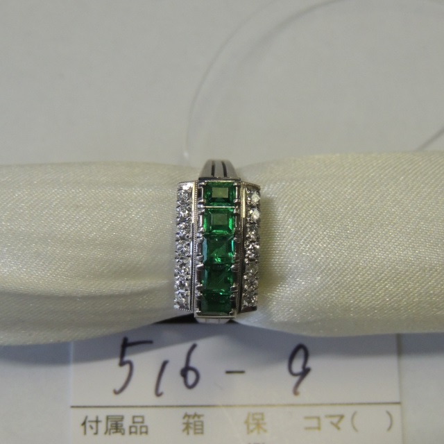リング エメラルド ダイヤ Pt900 9.00g 中鑑 石目:E3.20 FD0.41