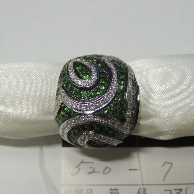 リング グリーンガーネット 金性 石目薄 K14WG 17.30g 石目:GG2.70 FD0.36