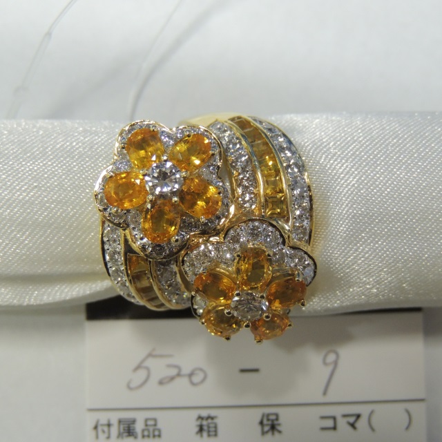 リング イエローサファイア ダイヤ K18 14.90g 石目:YS4.67 FD2.13