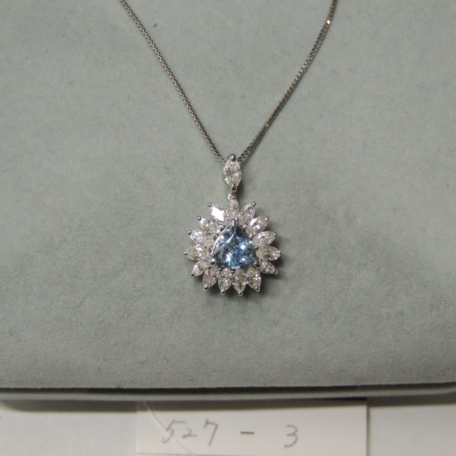 ペン・ネック アクアマリン ダイヤ Pt900/Pt850 5.60g GRJソ 石目:AQ1.05 FD1.08