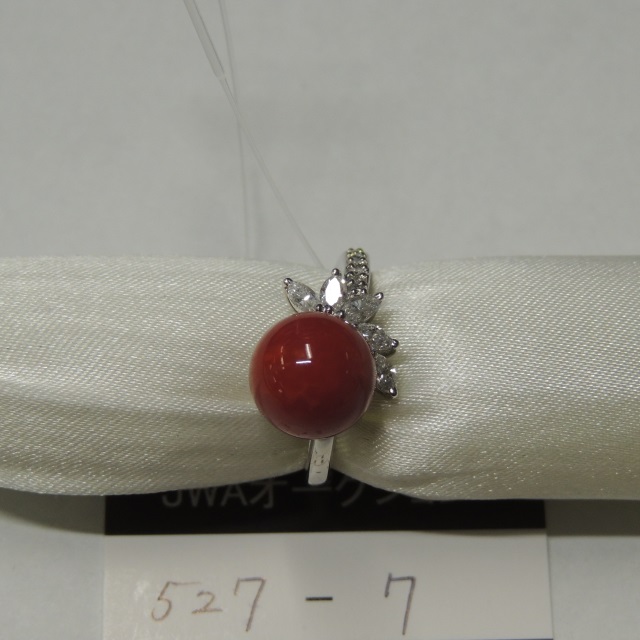 リング 珊瑚 ダイヤ 10mm Pt900 7.00g 石目:FD0.43