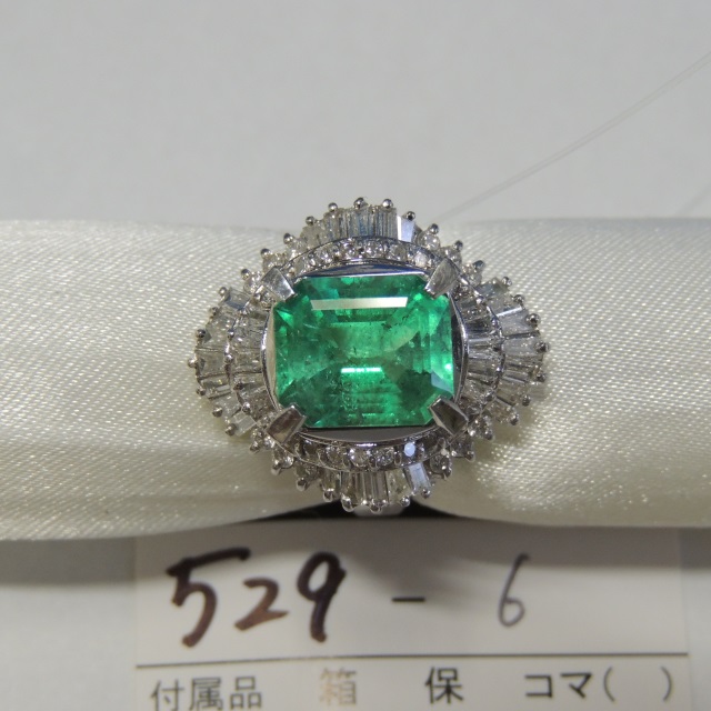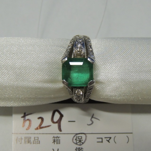 リング エメラルド ダイヤ Pt900 14.40g 石目:4.60 1.535