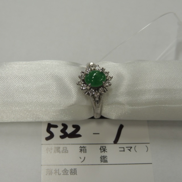 リング ヒスイ ダイヤ K18WG 5.90g