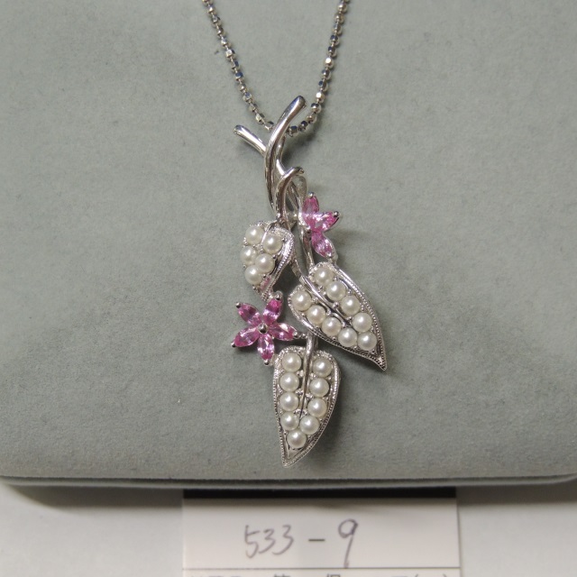 ペン・ネック ルビー 色石 パール K18WG/K14WG 10.40g