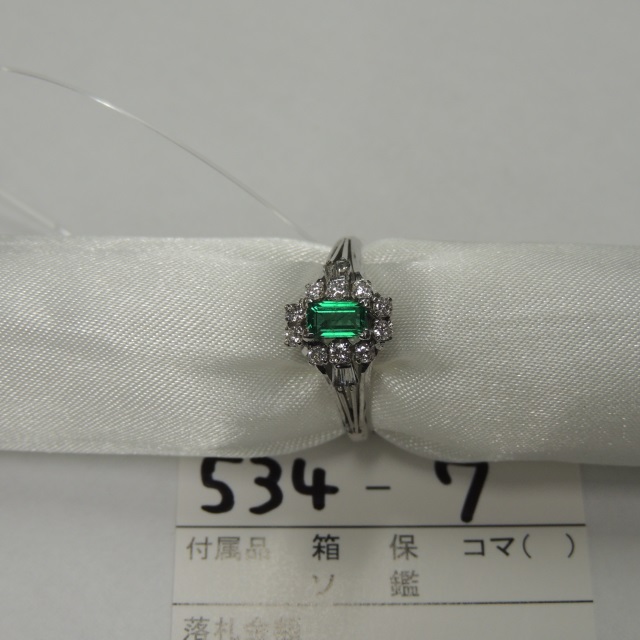 リング エメラルド ダイヤ Pt900 11.90g 中鑑 ソ 石目:E4.00 FD1.79