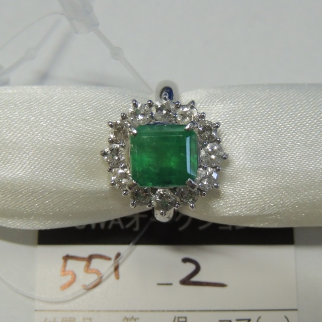 リング エメラルド ダイヤ Pt900 11.50g 中ソ 石目:E2.614 D1.00