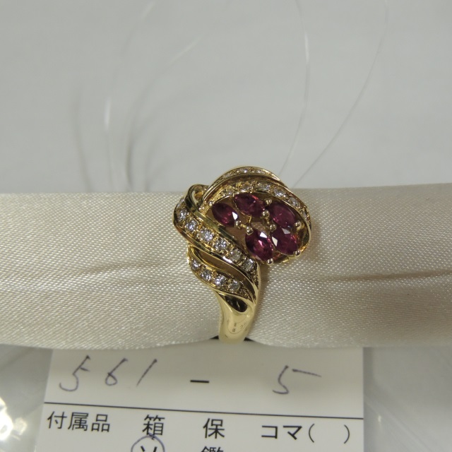 リング ルビー ダイヤ K18 6.00g 中ソ 石目:R0.68 FD0.26