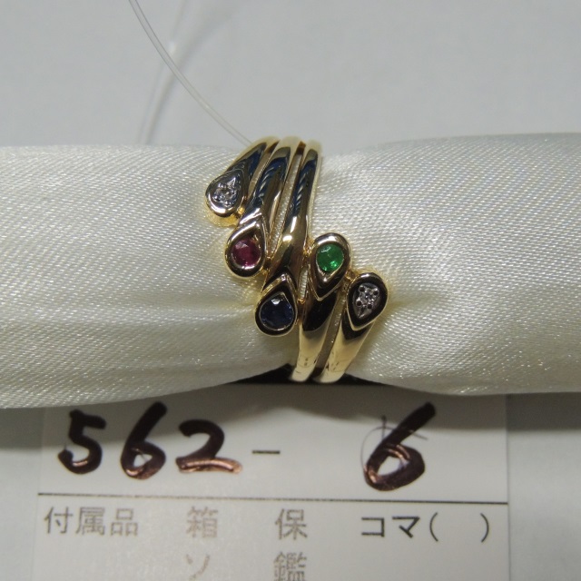 リング ルビー サファイア ダイヤ K18/Pt 8.30g 石目:R0.22 S0.18 D0.18