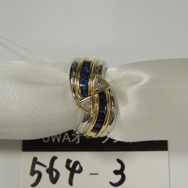 リング サファイア ダイヤ Pt900/K18 11.10g 鑑 石目:1.07 0.22